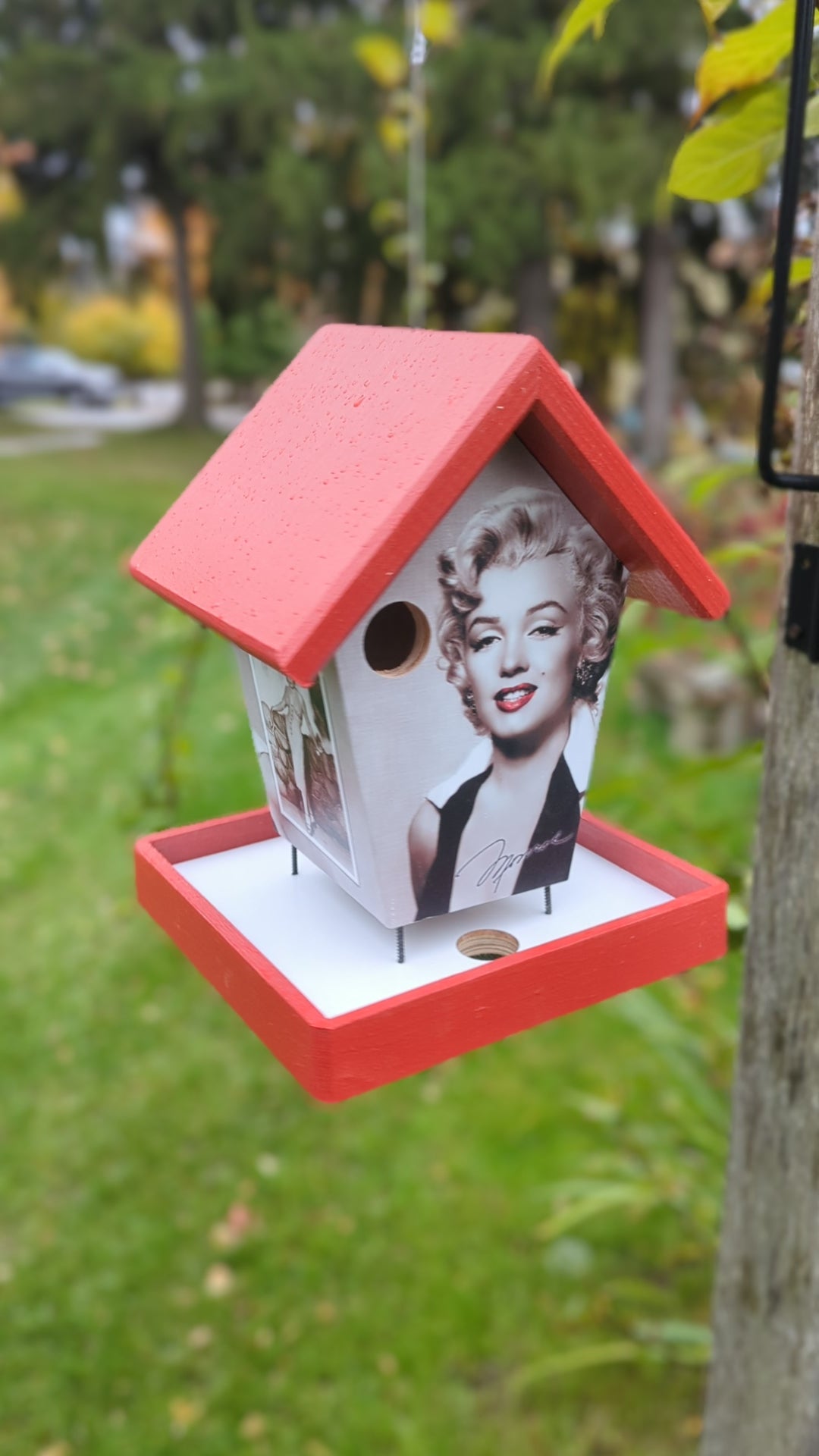 Marilyn Monroe Bird Feeder, Red Roof and Base.